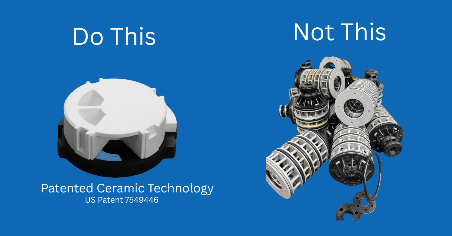 Fortunately, that is not your only choice. Some water softener systems in Jacksonville Fl us a ceramic disc with channels in it, instead of rubber seals. When the disc is turned water channels align which allow water to different parts of the system, facilitating regeneration. The perfectly smooth polished ceramic disc makes a hermetic seal in each valve position. A hermetic seal is an airtight seal that prevents the passage of air or water. And because it's ceramic, it never wears out. These channeled discs can run for decades with very little to no wear.